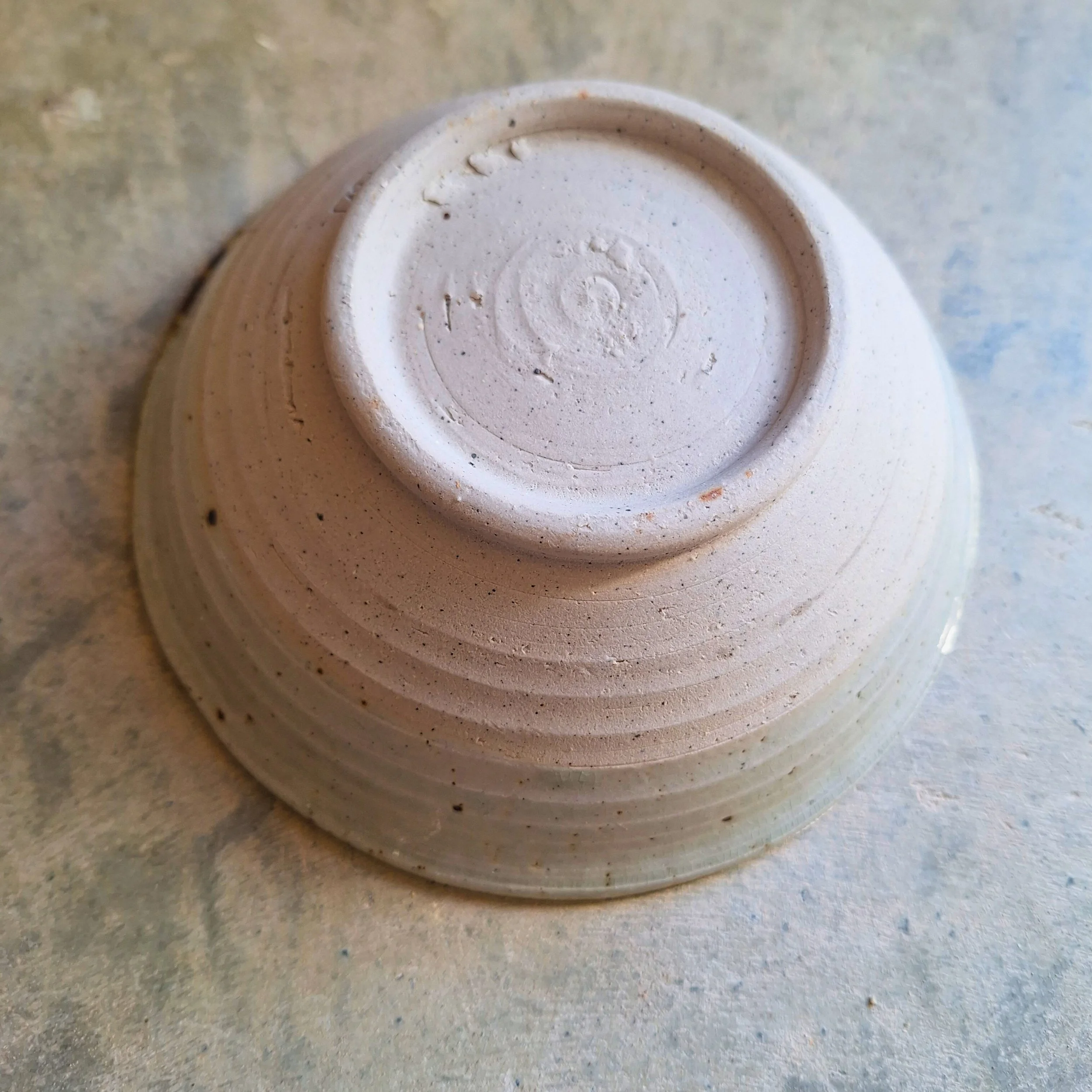 The small bowl is perfect for entrée soup or a bowl of porridge. The rim is decorated with a subtle pottery stamp, and sits on a pretty foot ring.